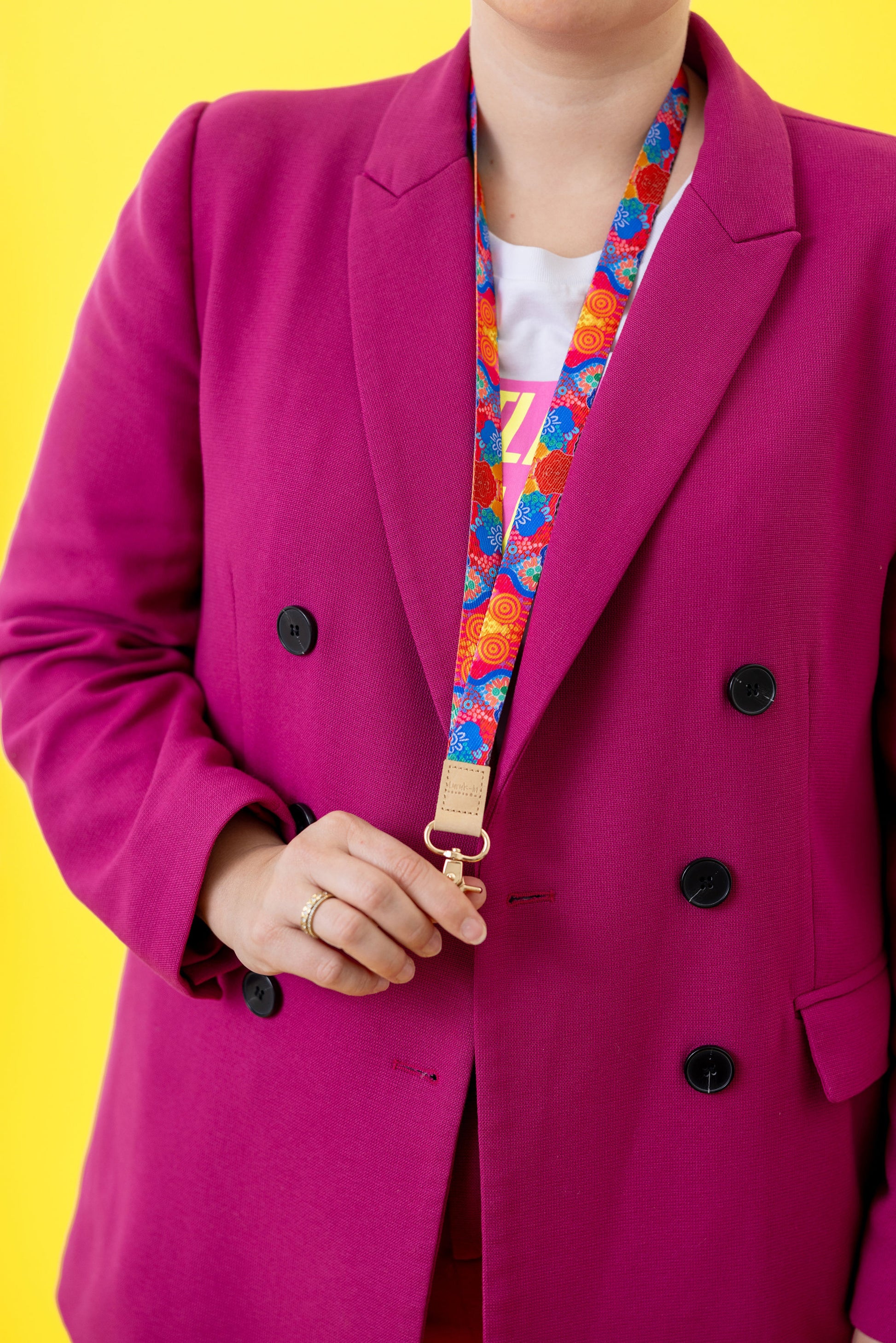 Ideal for storing passes, keys, ID, and more. Our sturdy lanyards feature vegan leather and rose gold hardware.
