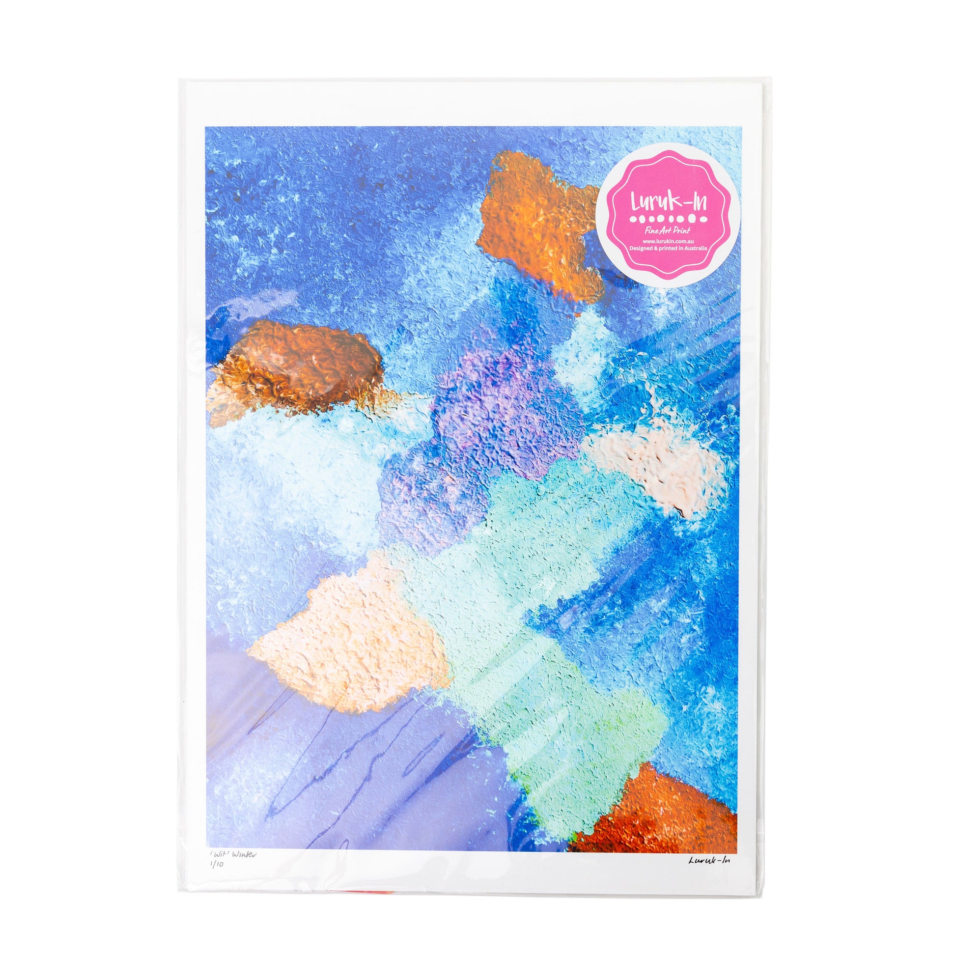 Wit 'Winter' reflects the serenity and transformation of the winter season, as seen through the rich blues that embody the cool, flowing waters and the crisp, invigorating air, while the earthy tones and soft brows hint at the warmth of the land beneath.